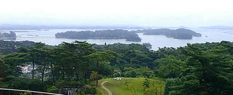 クラス会の会場の大観荘から見た松島海岸です。 恋人同士でくると、そのカップルは別れるそうです。 |