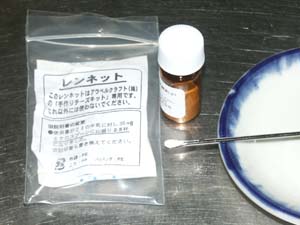 ・塩0.5gとレンネット70mgを良く溶かします。 ・マイクロスプーンで計ります。 |