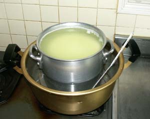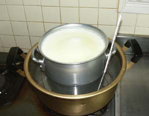 ・殺菌した牛乳を35℃前後に冷まします。
