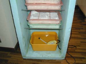 ・麹室に入れ、30℃を保ちます。 ・スタイロフォーム(50mm)で作りました。 |