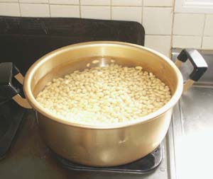・大豆を煮ます。