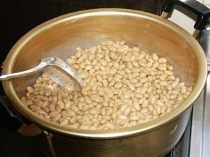 ・指で押して簡単につぶれるくらい煮ます。 ・時々水がなくなっていないか確認します。 ・沸騰してから約3から4時間煮ます。 ・写真は煮あがったものです。 |