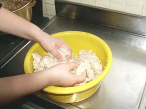 ・混ぜ合わせます。 ・ここで硬さを調整します。とっておいた煮汁を使います。 ・やわらかくなりすぎたりしないように!